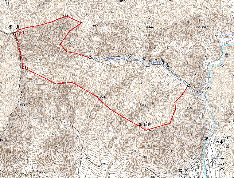 後山を基準に手前は笛石山ルートで下山 後ろは大馬鹿門ルートで林道へ下山 緊急時の対応は事務局 連絡 携帯・アマチュア無線機 JO3DNV鈴北コールサイン |