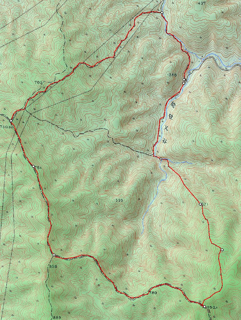 <エスケープルート> 大御影山西500mからの北尾根〜イヤ谷ヘ下る整備ルート。 |