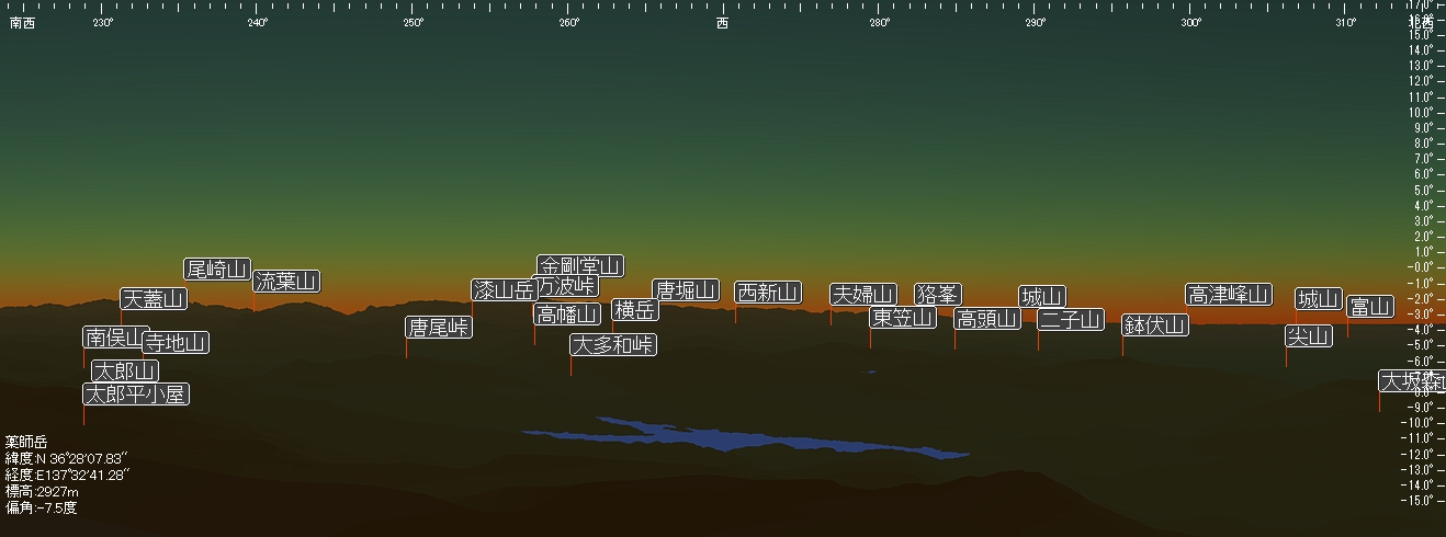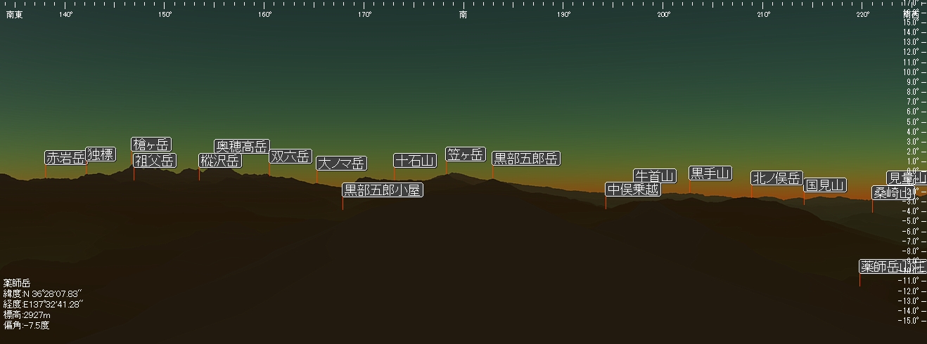 (更新時刻:2016/07/23 15:02) (更新時刻:2016/07/23 16:31) 8月7日、日の出時北方向 (更新時刻:2016/07/23 16:32) 8月7日、日の出時東方向 (更新時刻:2016/07/23 16:33) 8月7日、日の出時南方向 (更新時刻:2016/07/23 16:34) 8月7日、日の出時西方向 (更新時刻:2016/07/23 16:35) 8月7日、5時半北方向 (更新時刻:2016/07/23 16:35) 8月7日、5時半東方向 (更新時刻:2016/07/23 16:36) 8月7日、5時半南方向 (更新時刻:2016/07/23 16:36) 8月7日、5時半西方向 (更新時刻:2016/07/23 16:37) 薬師岳の花 (更新時刻:2016/07/24 10:46) |