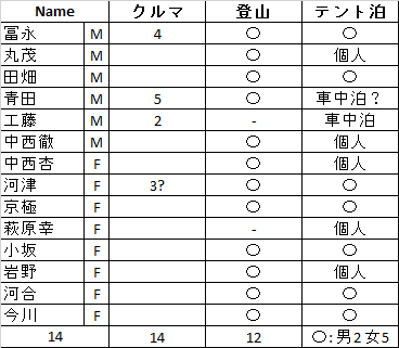 | 食事 | 打合せ済み |