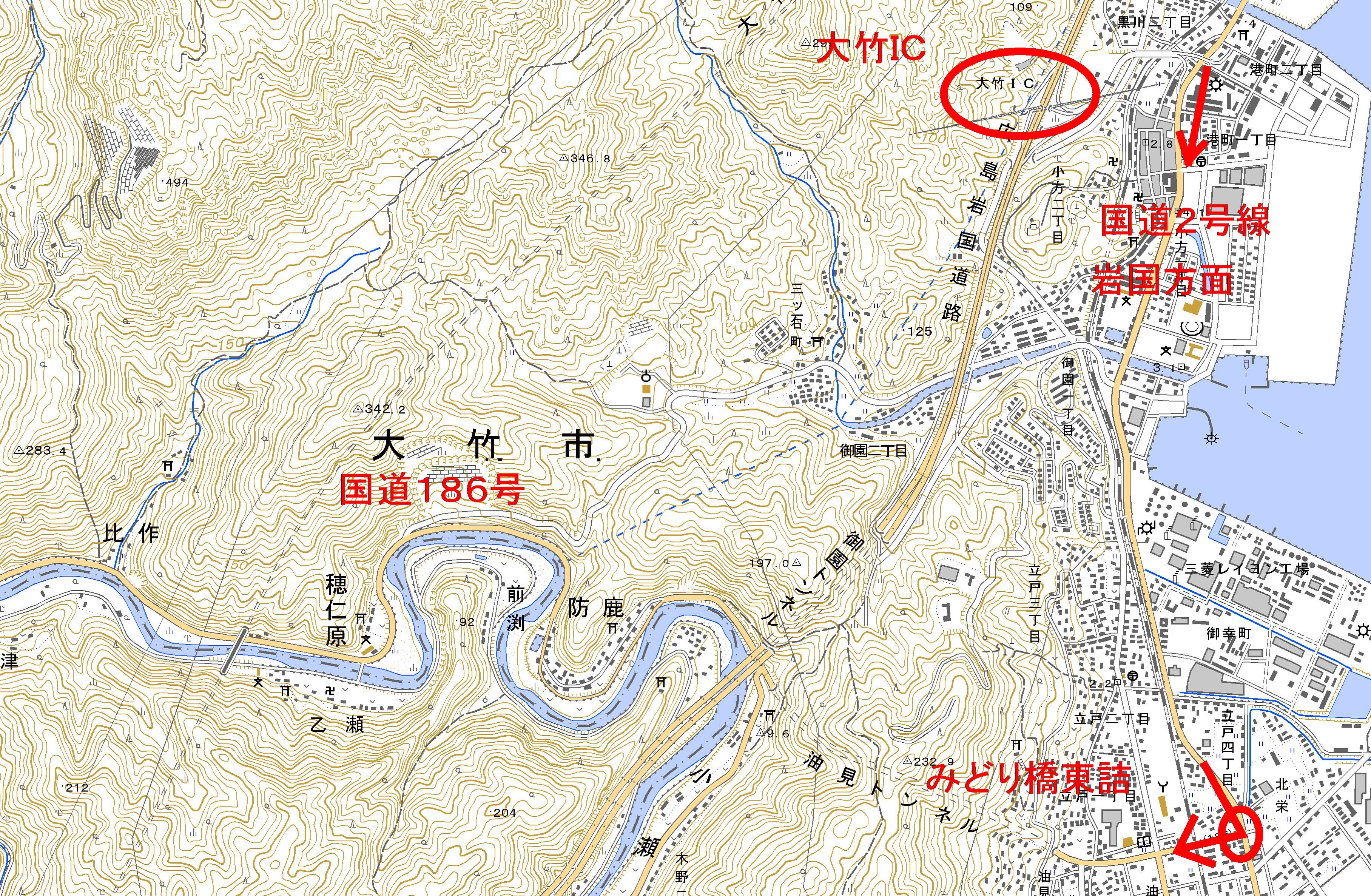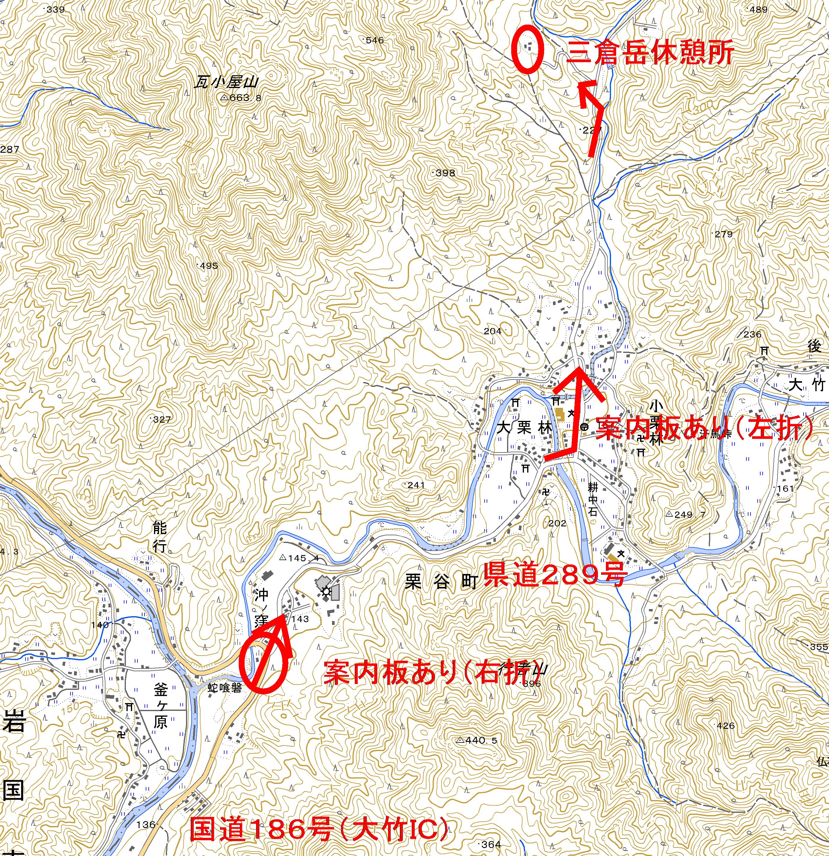 三倉岳休憩所までのアプローチ・・・山陽道 大竹IC→国道186号 (およそ1時間) ※クマが出没します。休憩所周辺でも2〜3ヶ月前に目撃情報があります。 |