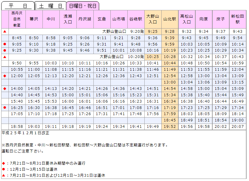 | 計画書の提出先/場所 | 大倉BSの登山ポストに提出 |