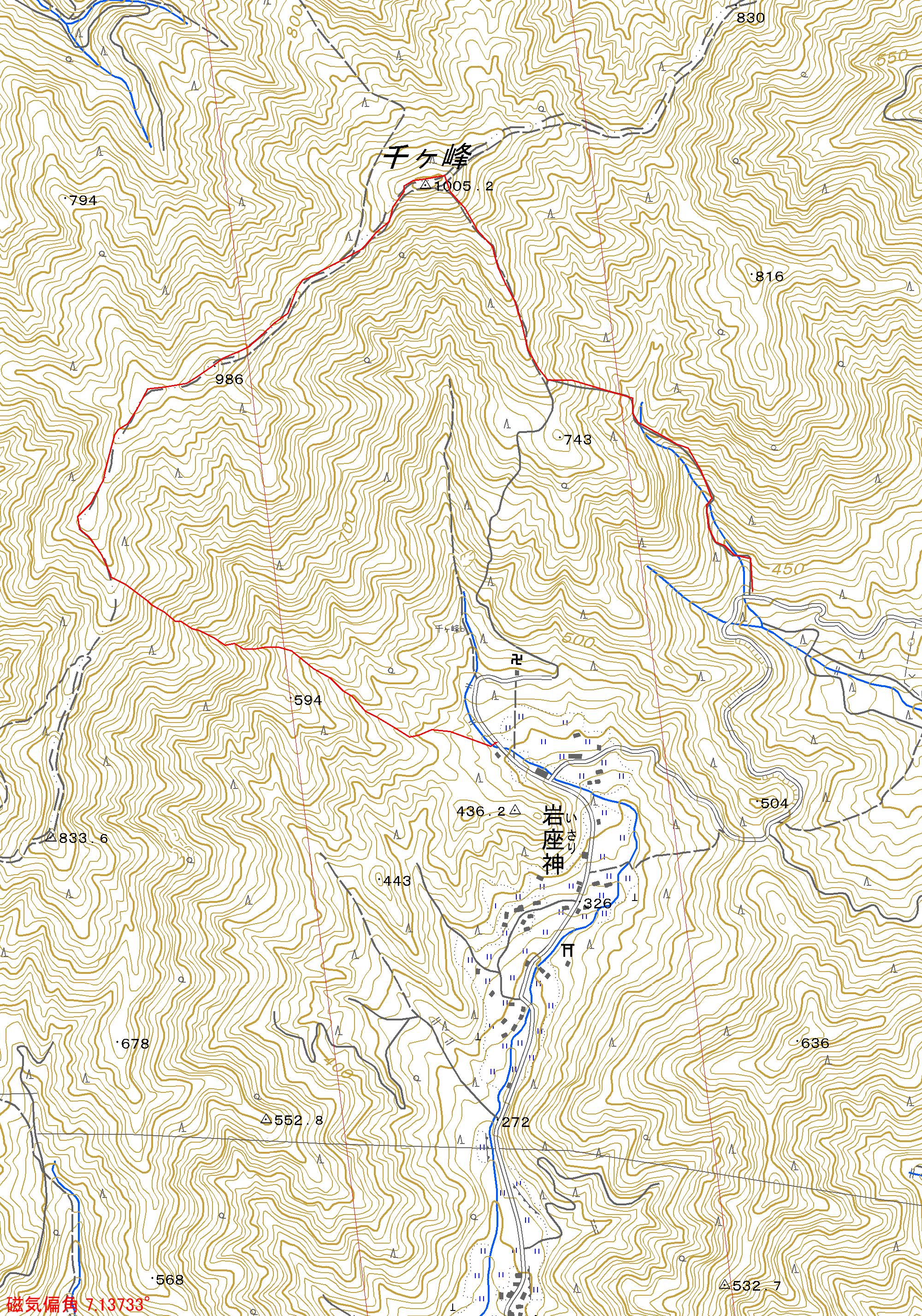三谷登山口(10:00)=岩座神(いさりがみ)コース・合流(10:40)=千ガ峰山頂(11:00)